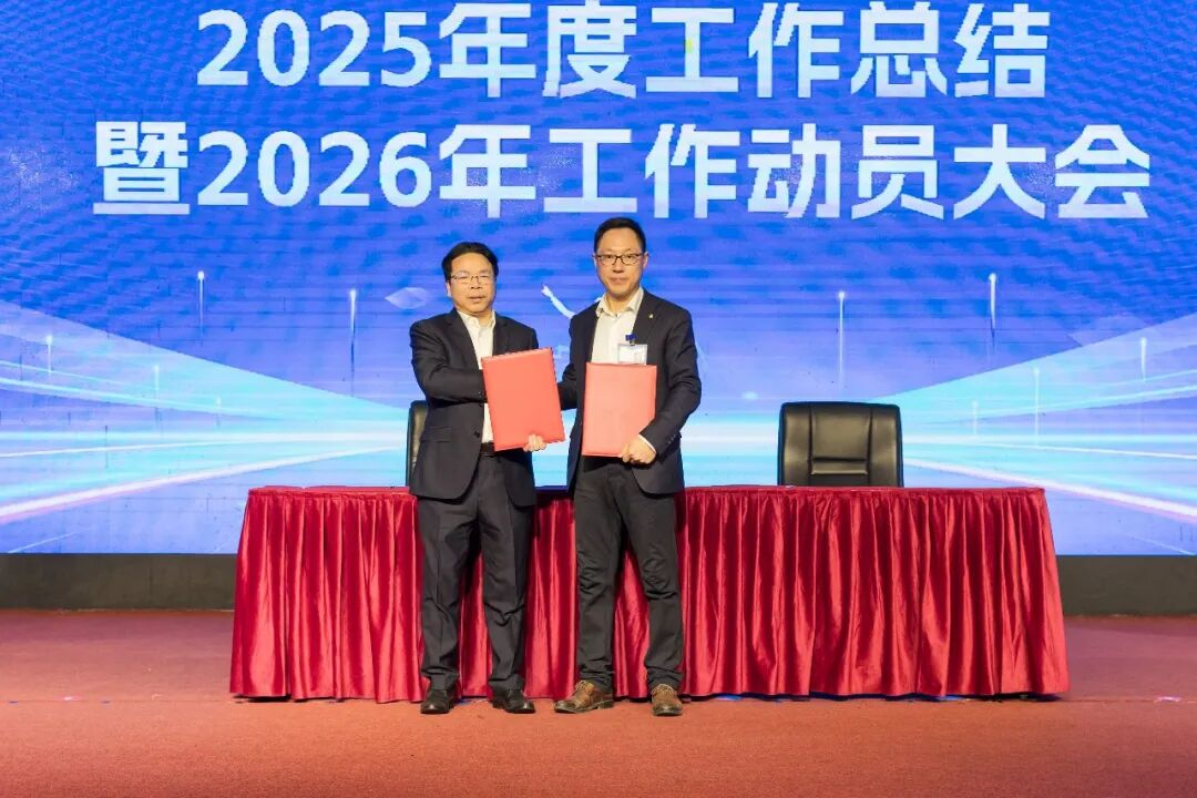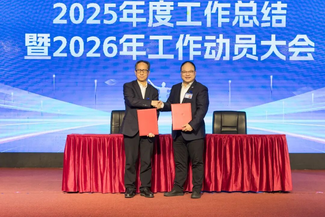 财务总监陈红飞宣读2026年度公司总预算及各单位预算目标,相关责任领导现场接受预算任务;总裁佘朋鲋宣读2025年度高层管理岗位任职目标承诺完成情况评定结果、2026年度任职目标承诺难度等级评定结果,并与相关干部代表现场签订任职目标承诺书。