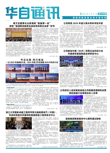 黄文宝董事长出席湖南“新春第一会” 荣获“新湖南贡献奖全省优秀民营企业家”称号 守正出新 同行致远 ——记2025年度表彰大会、2025年度工作总结暨2026年动员大会 浙江大学国家卓越工程师学院与施耐德电气(中国)、 华自科技签约共建绿色智能制造工程师技术中心 公司荣获2025年度大禹水利科学技术奖 公司参加中国(长沙)民营企业科创大会 共建柔性智能制造全球研发中心 公司成功入选安徽省省级公共数据资源授权运营 绿色低碳行业领域合伙人名单